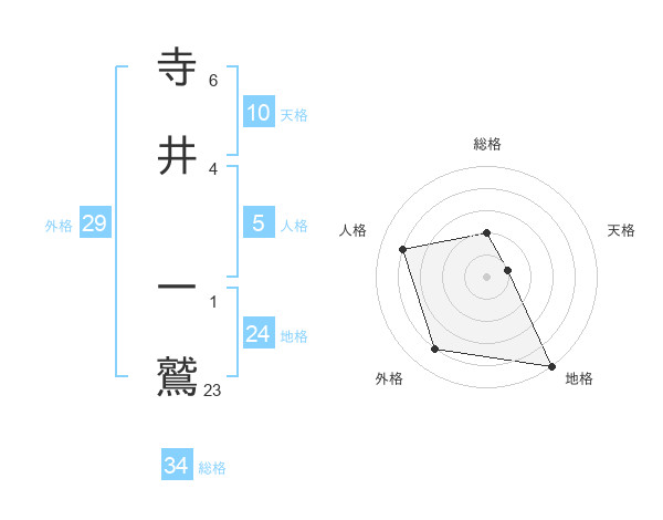 寺井 一鷲さんの総格は34画の2点!