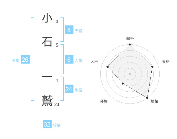 小石 一鷲さんの総格は32画の5点!