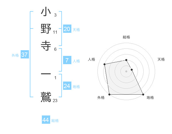 小野寺 一鷲さんの外格は37画の5点!
