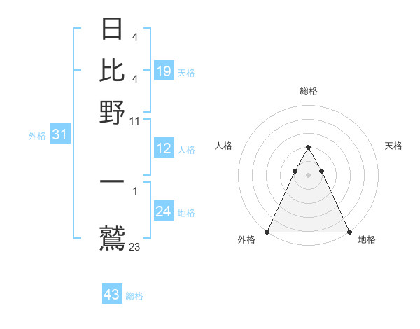 日比野 一鷲さんを姓名の画数から五運を鑑定