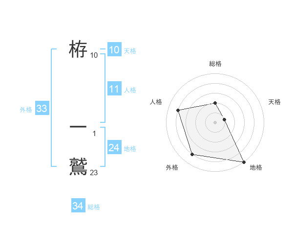 栫 一鷲さんの総格は34画の2点!