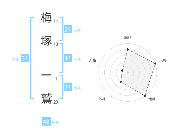 梅塚 一鷲さんを姓名の画数から五運を鑑定