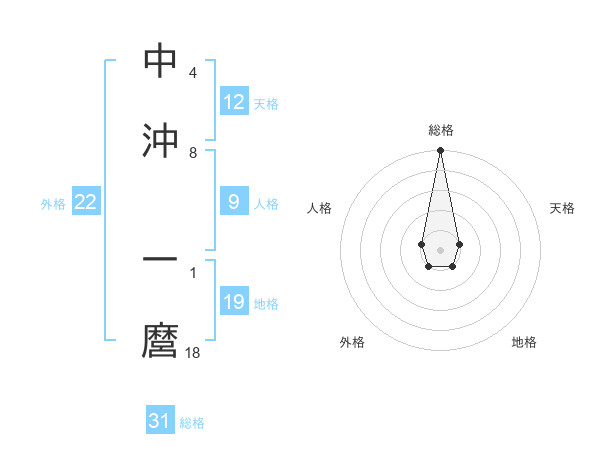 中沖 一麿さんを姓名の画数から五運を鑑定