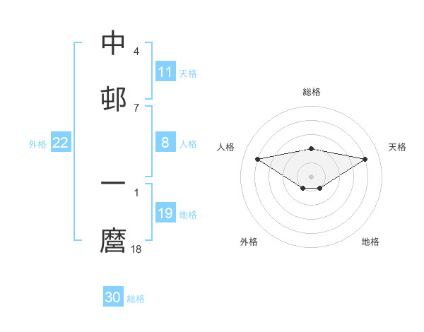 中邨 一麿さんを姓名の画数から五運を鑑定