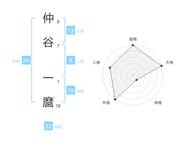 仲谷 一麿さんの総格は32画の5点!