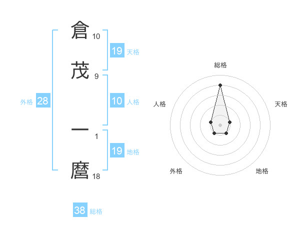 倉茂 一麿さんの総格は38画の4点!