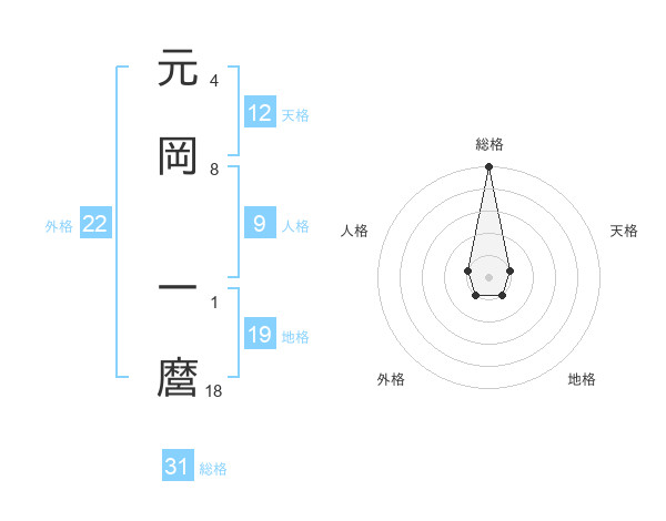 元岡 一麿さんを姓名の画数から五運を鑑定