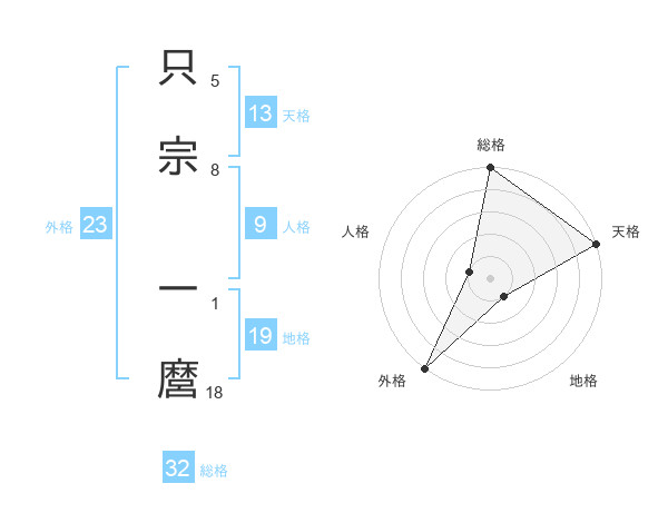 只宗 一麿さんの天格は13画の5点!