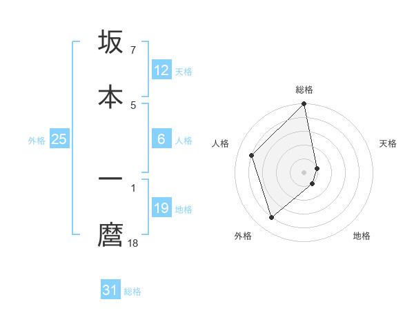 坂本 一麿さんの総格は31画の5点!