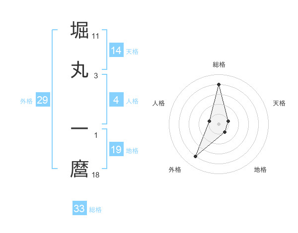 堀丸 一麿さんの総格は33画の4点!
