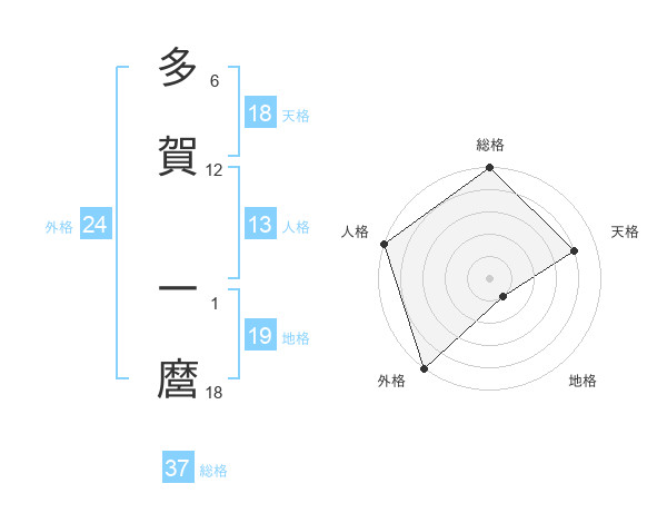 多賀 一麿さんを姓名の画数から五運を鑑定