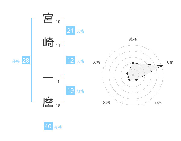 宮崎 一麿さんを姓名の画数から五運を鑑定