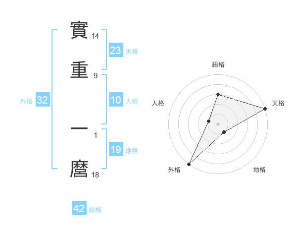 實重 一麿さんの天格は23画の5点!