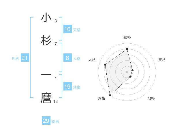 小杉 一麿さんの地格は19画の1点!