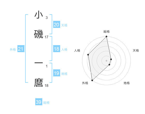 小磯 一麿さんを姓名の画数から五運を鑑定
