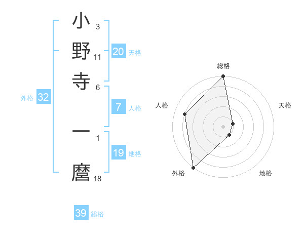 小野寺 一麿さんの総格は39画の5点!