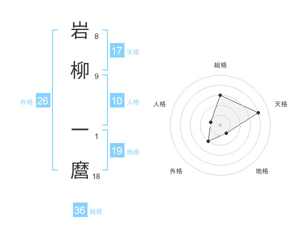 岩柳 一麿さんの天格は17画の4点!