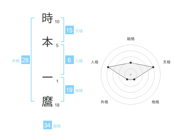 時本 一麿さんを姓名の画数から五運を鑑定