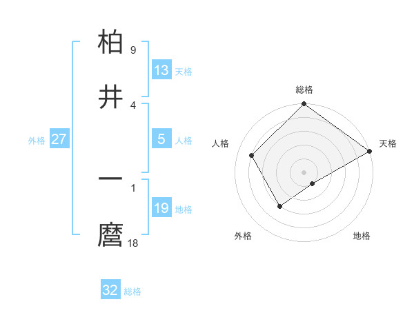 柏井 一麿さんの総格は32画の5点!