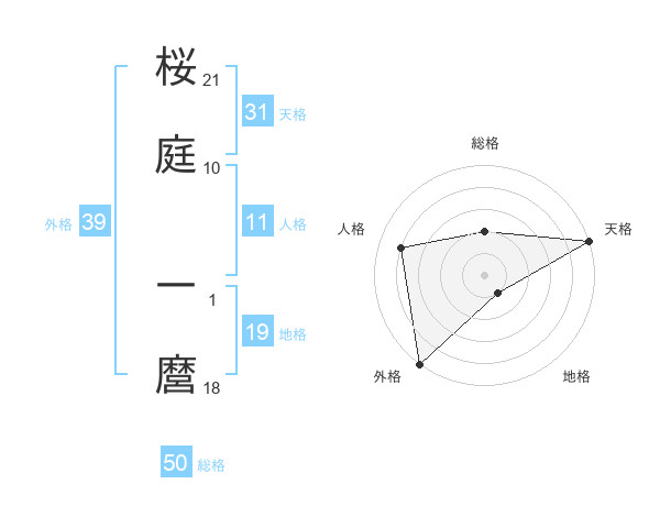 桜庭 一麿さんを姓名の画数から五運を鑑定