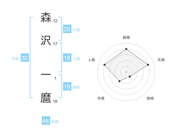 森沢 一麿さんの地格は19画の1点!