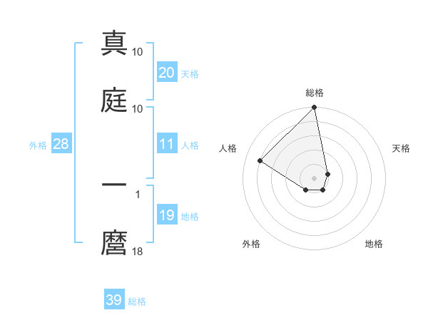 真庭 一麿さんの総格は39画の5点!