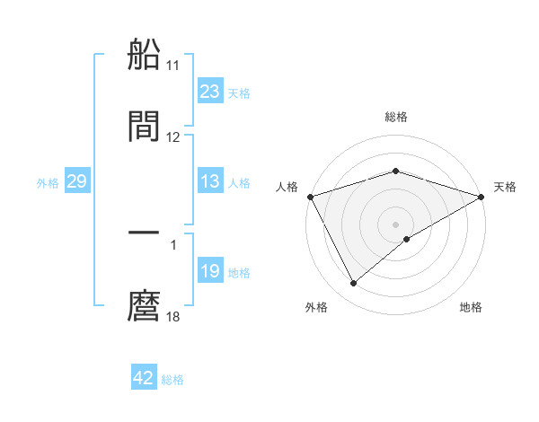 船間 一麿さんの天格は23画の5点!