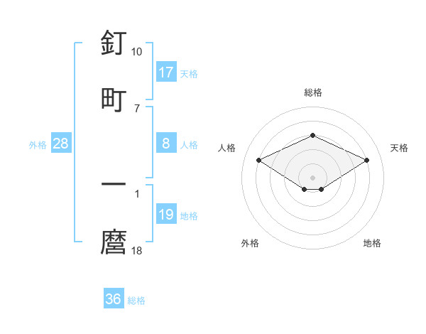 釘町 一麿さんを姓名の画数から五運を鑑定