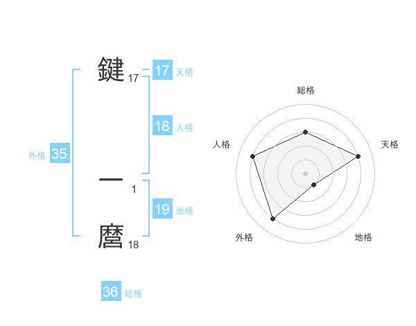 鍵 一麿さんの外格は35画の4点!