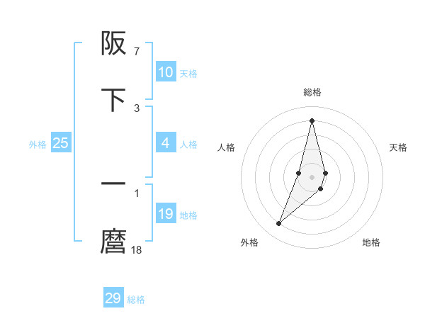 阪下 一麿さんを姓名の画数から五運を鑑定