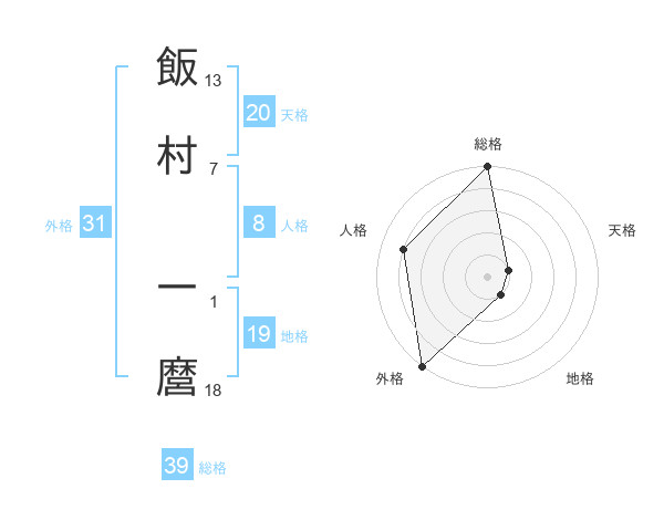 飯村 一麿さんの外格は31画の5点!