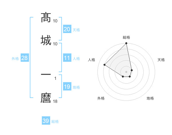 髙城 一麿さんの総格は39画の5点!