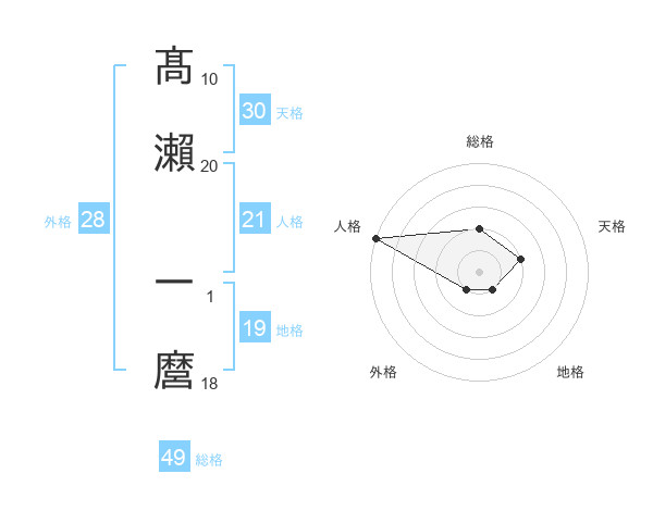 髙瀨 一麿さんの人格は21画の5点!