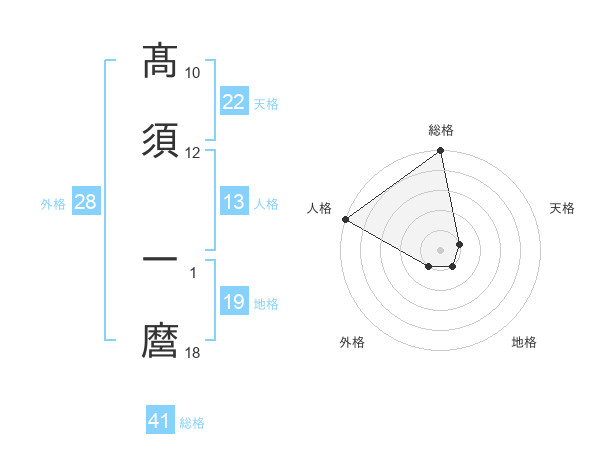 髙須 一麿さんの天格は22画の1点!