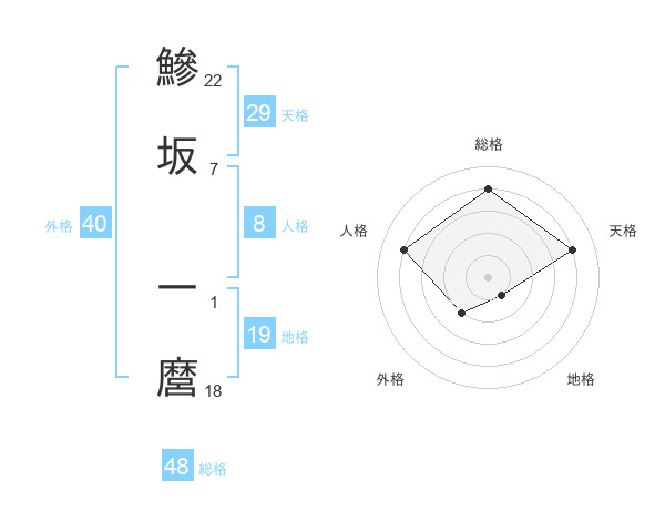 鰺坂 一麿さんを姓名の画数から五運を鑑定