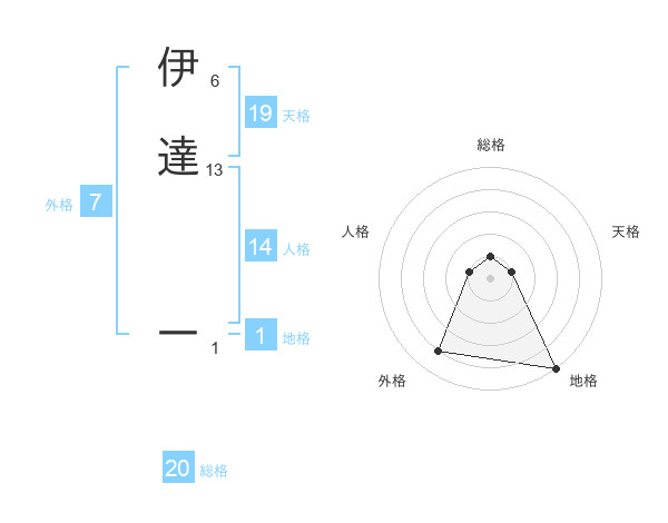 伊達 一さんの総格は20画の1点!