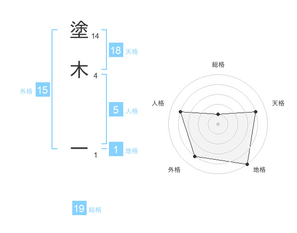 塗木 一さんの天格は18画の4点!