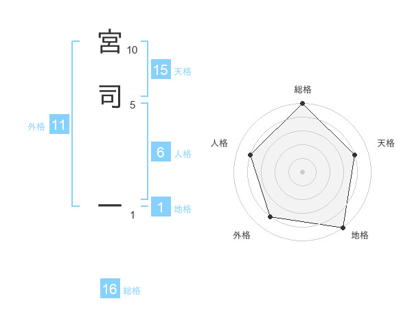 宮司 一さんを姓名の画数から五運を鑑定