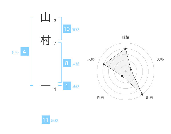 山村 一さんの総格は11画の4点!