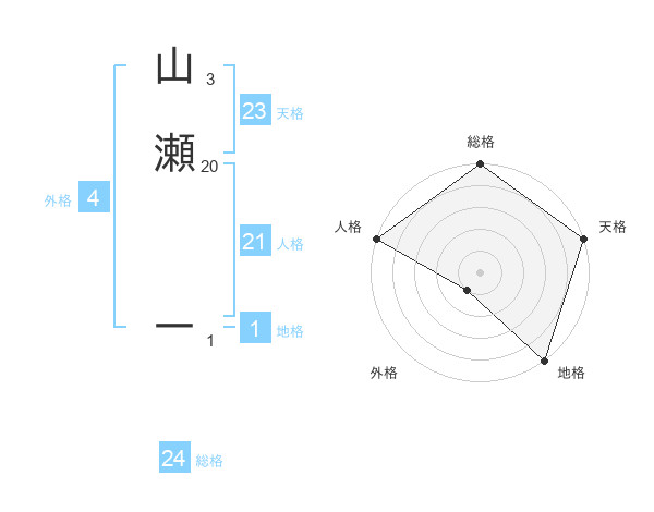 山瀬 一さんの総格は24画の5点!