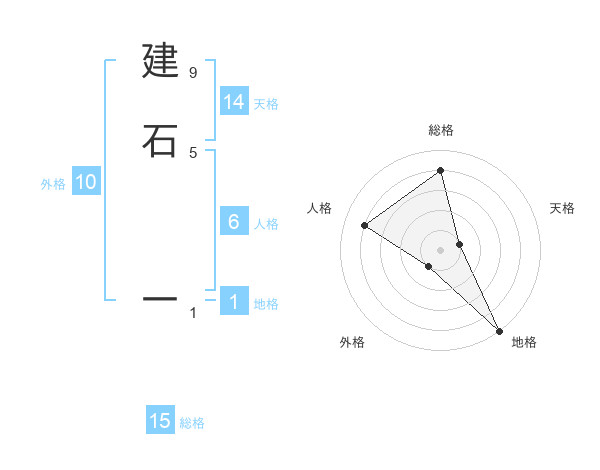 建石 一さんの総格は15画の4点!