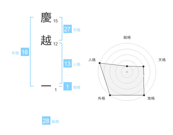 慶越 一さんの外格は16画の5点!