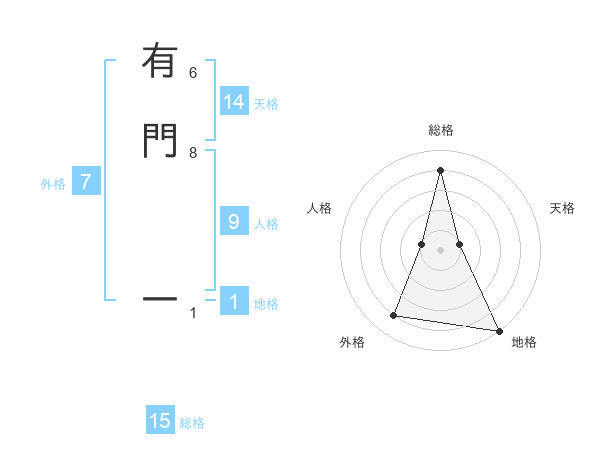 有門 一さんの総格は15画の4点!