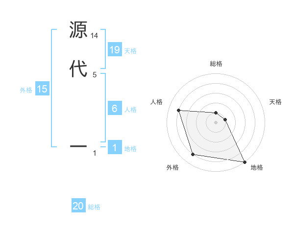 源代 一さんの総格は20画の1点!