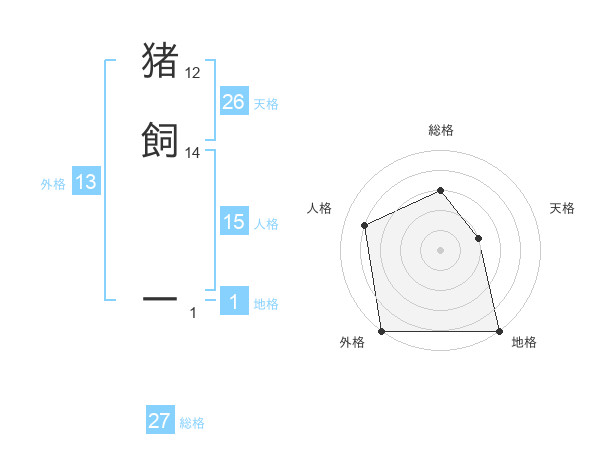 猪飼 一さんの地格は1画の5点!