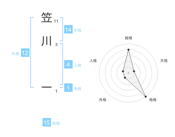 笠川 一さんの総格は15画の4点!