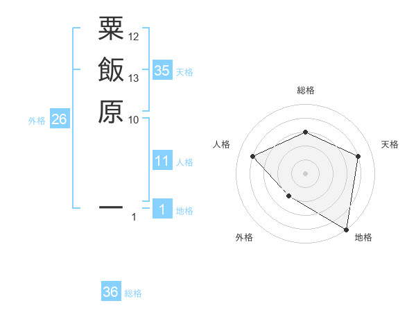 粟飯原 一さんを姓名の画数から五運を鑑定
