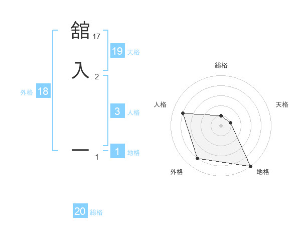 舘入 一さんの総格は20画の1点!