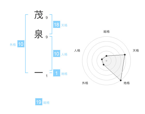 茂泉 一さんの総格は19画の1点!