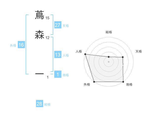 蔦森 一さんの総格は28画の1点!